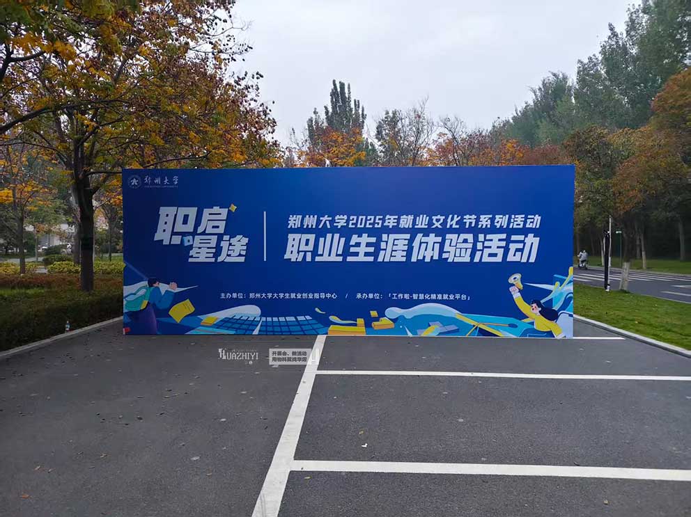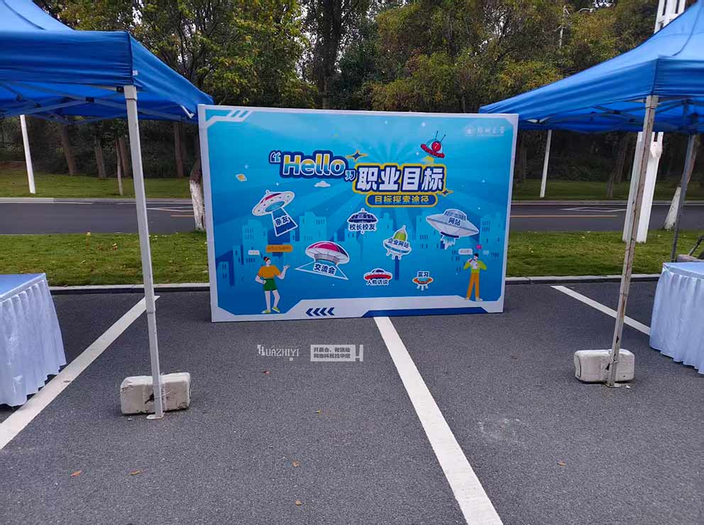 洛陽(yáng)帳篷桌椅租賃以長(zhǎng)條桌與紅色塑料凳組合完善配套布局。長(zhǎng)條桌選用耐磨環(huán)保的實(shí)木紋板材,單桌長(zhǎng)1.2米、寬0.6米,用于擺放體驗(yàn)道具、宣傳物料;紅色塑料凳輕便堅(jiān)固,色彩鮮艷活潑。為強(qiáng)化活動(dòng)主題氛圍,洛陽(yáng)帳篷桌椅租賃在場(chǎng)地入口與中心區(qū)域搭建桁架背景,噴繪畫面融入“鄭州大學(xué)職業(yè)生涯體驗(yàn)活動(dòng)”主題標(biāo)語(yǔ)與職業(yè)探索元素,色彩明快鮮活,與藍(lán)色帳篷、紅色塑料凳形成和諧的視覺(jué)體系。