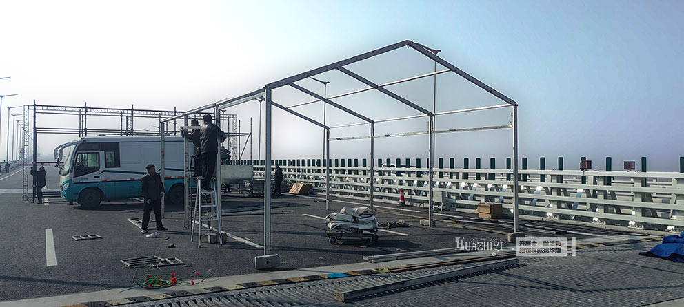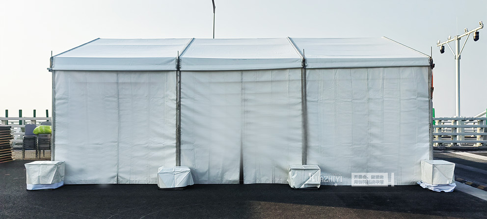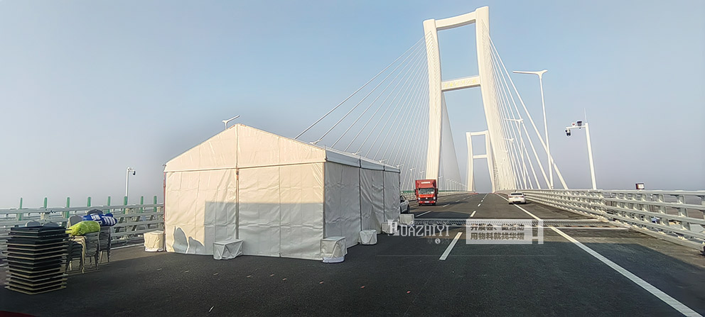 為確保通車儀式按時籌備就緒,山東菏澤篷房出租團隊提供了全流程高效服務。前期與主辦方深度對接,精準核算篷房規格、數量及配套設施需求,快速敲定搭建細節;搭建環節,專業團隊分工明確、操作規范,嚴格按照施工標準完成框架組裝、篷布張拉等工序,確保篷房搭建牢固、密封嚴密,各項性能符合安全標準。整個搭建過程高效有序,最大限度減少對場地周邊交通的影響,為后續儀式彩排預留充足時間。